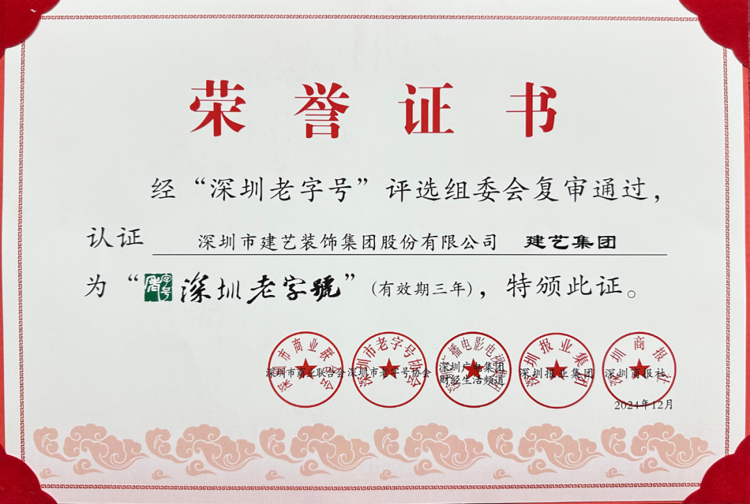 【重磅】建藝集團(tuán)連續(xù)三次獲評(píng)“深圳老字號(hào)”