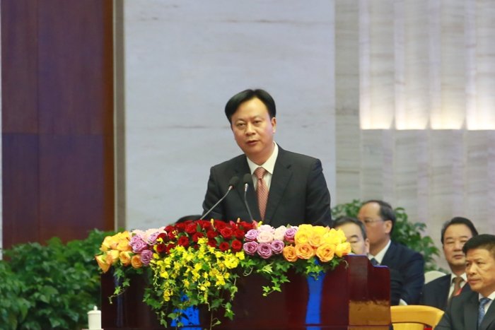 11月14日,備受矚目的第五屆世界客商大會(huì)在梅州市世界客商中心舉行隆重的開幕儀式。廣東省客家商會(huì)理事會(huì)成員、常務(wù)副會(huì)長,建藝集團(tuán)董事長兼總裁劉海云應(yīng)邀出席大會(huì)并在主席臺(tái)就坐。