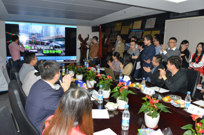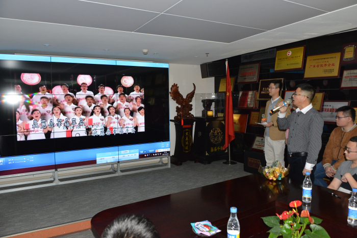 現(xiàn)場員工紛紛用手機打Call的方式為選手助陣
