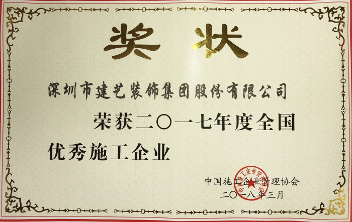 建藝集團(tuán)榮獲2017年度“全國(guó)優(yōu)秀施工企業(yè)”