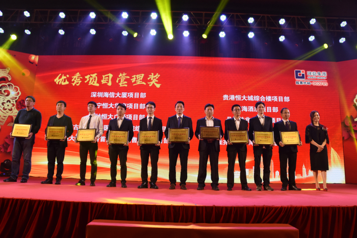 劉珊副董事長(右一)為建藝集團優(yōu)秀項目管理獎獲得者頒獎