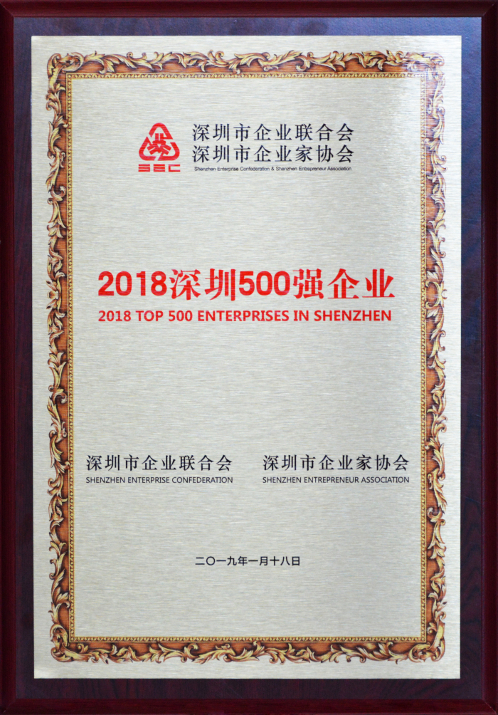 建藝集團(tuán)獲評(píng)“2018深圳500強(qiáng)企業(yè)”