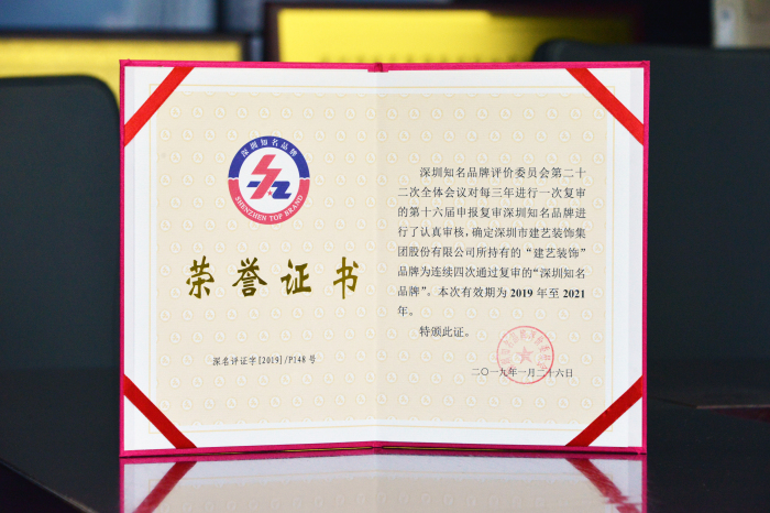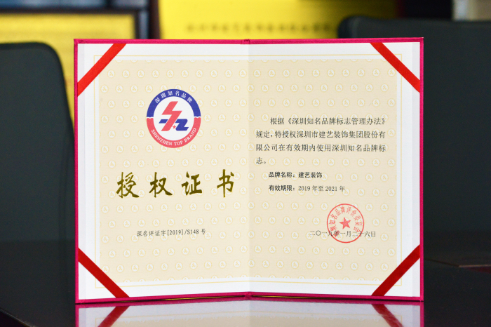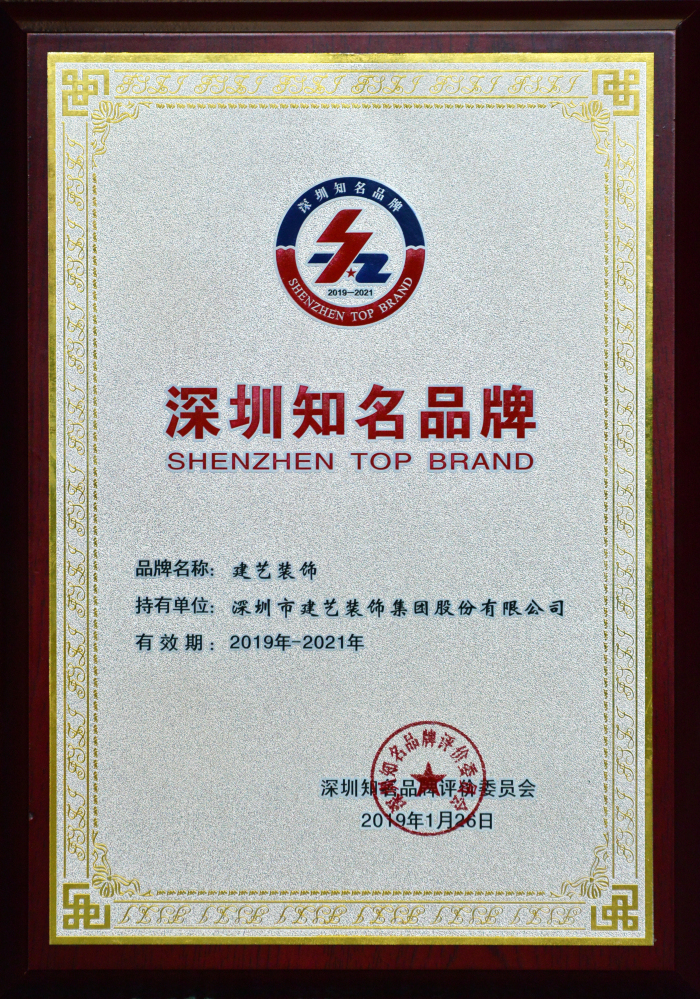 建藝集團蟬聯(lián)“深圳知名品牌”榮譽稱號