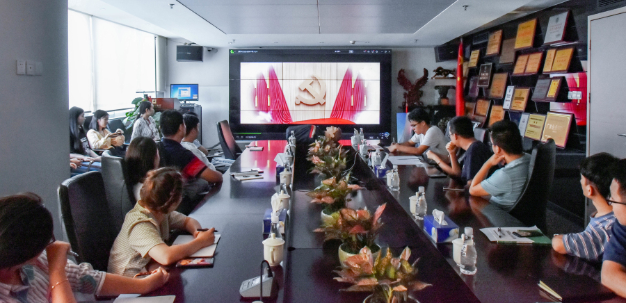 員工在認(rèn)真觀看《健康中國行動(dòng)宣傳片》
