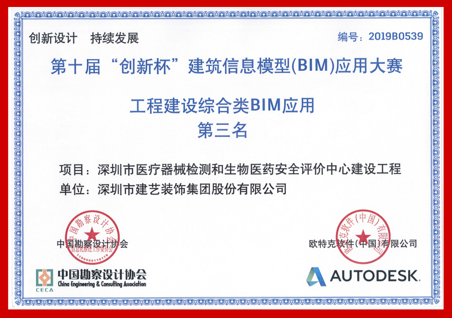 9月9日,由全球二維和三維設(shè)計(jì)、工程及娛樂軟件技術(shù)的領(lǐng)導(dǎo)者——?dú)W特克軟件(中國)有限公司聯(lián)合中國勘察設(shè)計(jì)協(xié)會舉辦的“2019第十屆‘創(chuàng)新杯’BIM應(yīng)用大賽優(yōu)秀作品成果發(fā)布交流會”在珠海隆重舉行。1228個(gè)作品經(jīng)網(wǎng)評、答辯、專家現(xiàn)場評審等環(huán)節(jié),最終有397個(gè)項(xiàng)目在比賽中勝出,我司參賽的《深圳市醫(yī)療器械檢測和生物醫(yī)藥安全評價(jià)中心項(xiàng)目》獲工程建設(shè)綜合類BIM應(yīng)用第三名。
