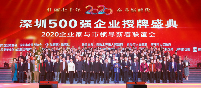 弘揚偉大奮斗精神共謀民族復興,勇?lián)刃惺痉妒姑硡^(qū)輝煌。日前,由深圳市企業(yè)聯(lián)合會/深圳市企業(yè)家協(xié)會、《時代商家》雜志社主辦的“壯麗七十年,奮斗新時代——深圳500強企業(yè)授牌盛典暨2020企業(yè)家與市領導新春聯(lián)誼會”在深圳灣體育中心舉行。建藝集團榮膺2019深圳500強企業(yè),深圳質量百強企業(yè)。