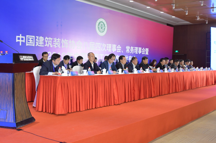 當(dāng)天下午,備受矚目的中國(guó)建筑裝飾協(xié)會(huì)八屆四次理事會(huì)、常務(wù)理事會(huì)暨2019年中國(guó)建筑工程裝飾獎(jiǎng)發(fā)布會(huì)成功召開(kāi)。中國(guó)建筑裝飾協(xié)會(huì)名譽(yù)會(huì)長(zhǎng)馬挺貴、會(huì)長(zhǎng)劉曉一、副會(huì)長(zhǎng)田思明、副會(huì)長(zhǎng)陳新、副會(huì)長(zhǎng)兼秘書(shū)長(zhǎng)張京躍等領(lǐng)導(dǎo)出席會(huì)議。建藝集團(tuán)、建藝控股董事會(huì)主席劉海云等中國(guó)建筑裝飾協(xié)會(huì)副會(huì)長(zhǎng),各地方裝飾協(xié)會(huì)會(huì)長(zhǎng)、秘書(shū)長(zhǎng),全國(guó)各地中裝協(xié)常務(wù)理事單位、理事單位代表700余人參加了大會(huì)。