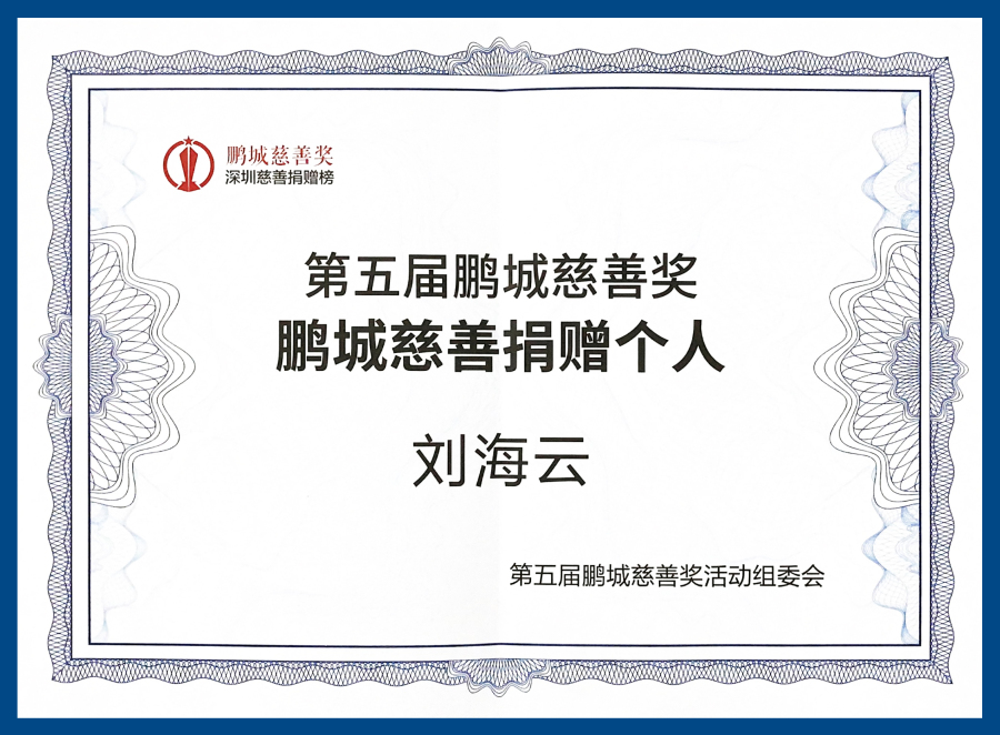 第五屆鵬城慈善獎(鵬城慈善捐贈個人)——劉海云