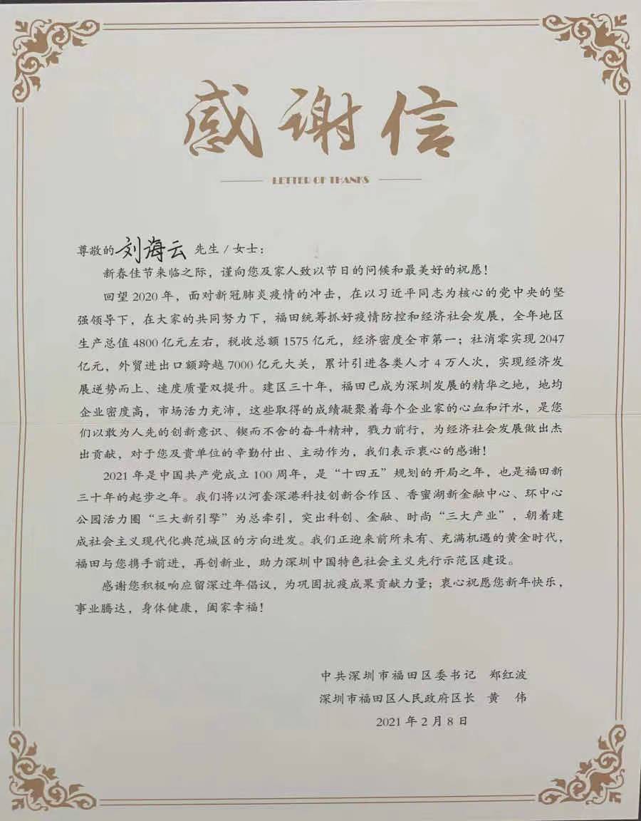 【建藝動態(tài)】一封感謝信,一份大盆菜——來自福田區(qū)委、區(qū)政府對企業(yè)家的關心致愛