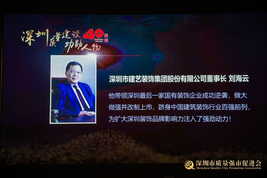 作為榮膺“功勛人物”的企業(yè)家之一,“深商風云人物”——劉海云主席長期以來深耕深圳質量建設。大會現(xiàn)場這樣評價劉海云主席:“他帶領深圳最后一家國有裝飾企業(yè)成功逆襲,做大做強并改制上市,躋身中國建筑裝飾行業(yè)百強前列,為擴大深圳裝飾品牌影響力注入了強勁動力?!?/span>