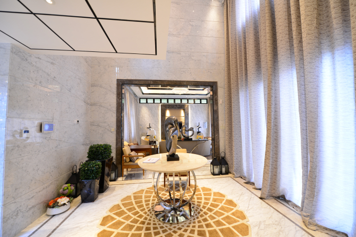 建藝集團(tuán)為保證名鐫的裝飾裝修效果,可謂是投入了大量的精力,對各種名貴裝飾材料更是巧妙設(shè)計(jì),并做到精心搭配。如酒窖地面采用意大利雪花白大理石,質(zhì)感純凈,如雪花般晶瑩剔透,也如四周的酒色一樣,品質(zhì)極高。而入戶大堂的旋轉(zhuǎn)吊燈和樓梯間從頂樓垂真而下的水晶吊燈,則都凸現(xiàn)了建藝集團(tuán)對設(shè)計(jì)要求的嚴(yán)格遵守和孜孜匠心。