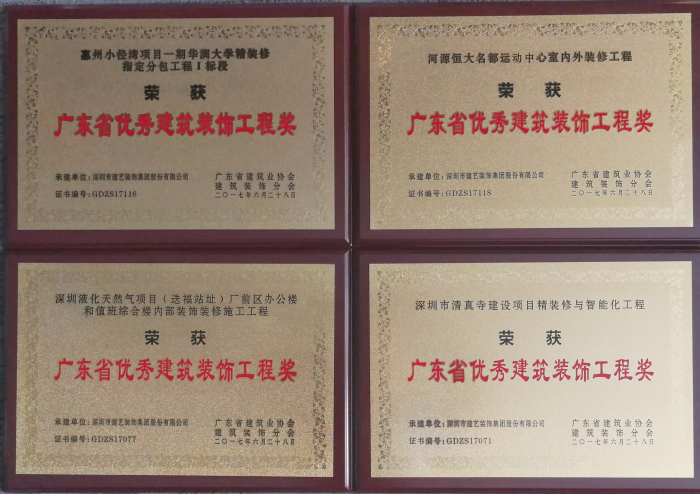 建藝集團喜獲4項“2017年廣東省優(yōu)秀建筑裝飾工程獎”