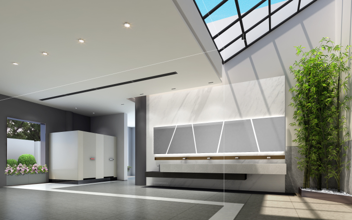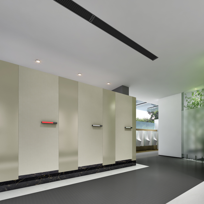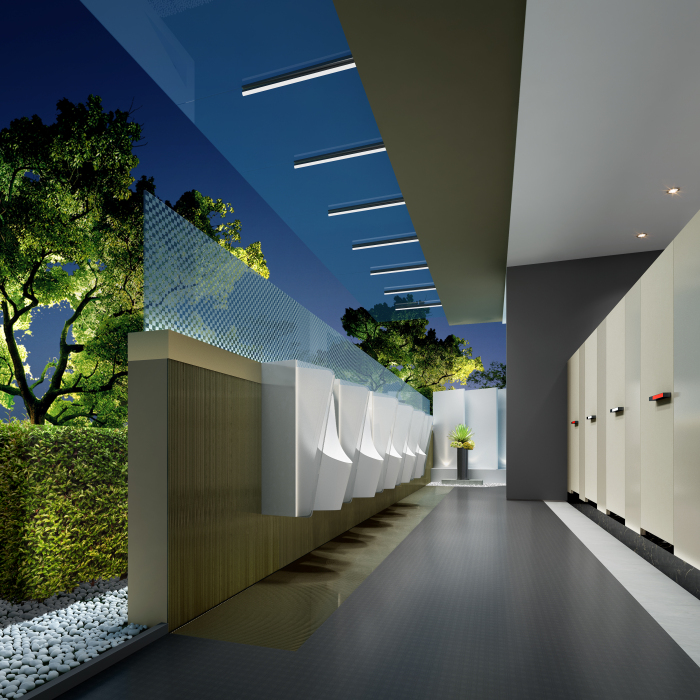結合南山的定位——世界級創(chuàng)新轉型濱海城區(qū),本公廁要做到“顛覆傳統(tǒng),打開思路”,按全市最高標準五星級。但受結構層高和風管影響,空間高度達不到五星,力爭在使用體驗方面達到最精致高端化。