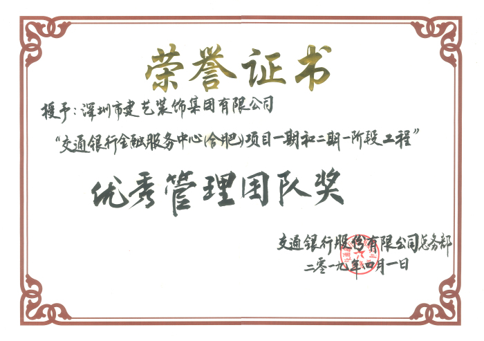 建藝集團(tuán)(安徽公司)——“優(yōu)秀管理團(tuán)隊(duì)獎(jiǎng)”