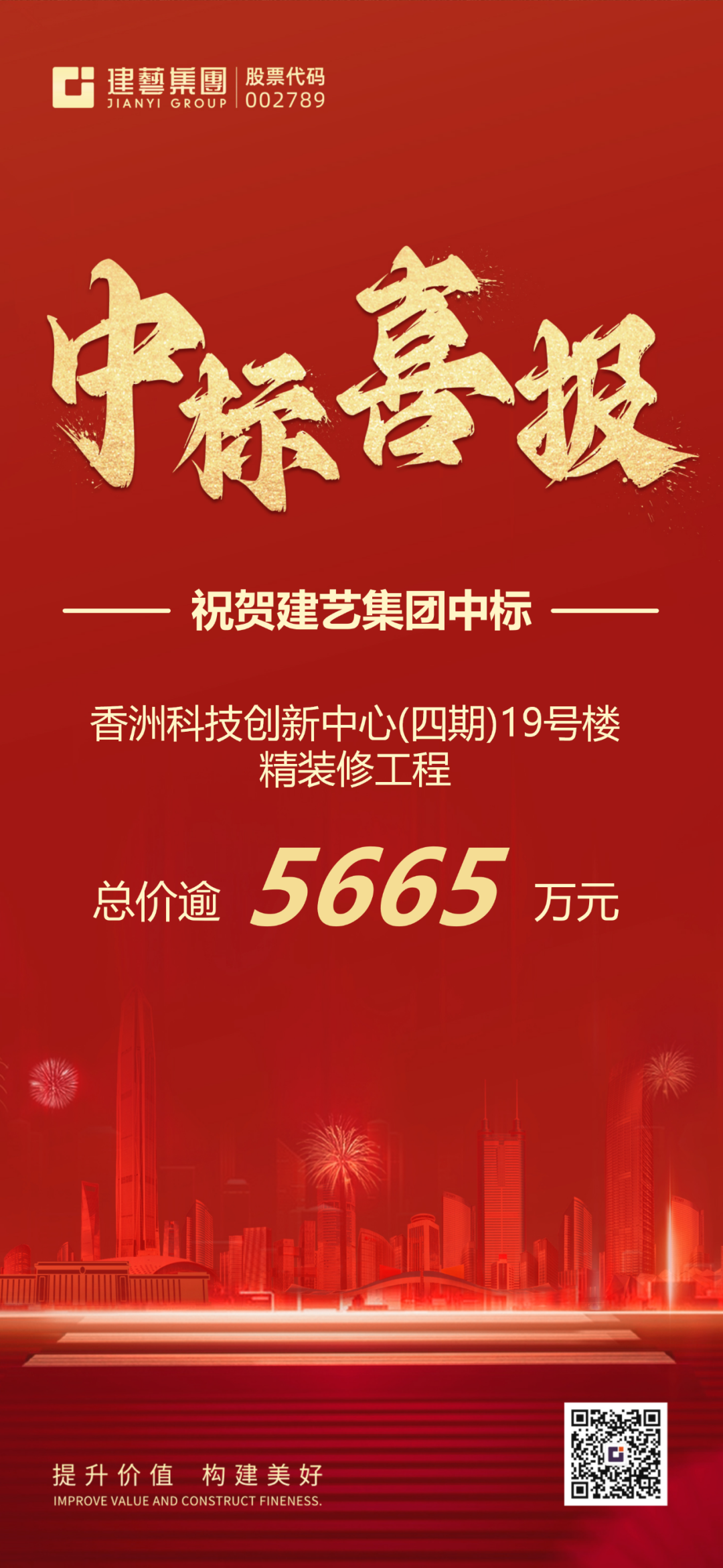 近期,深圳市建藝裝飾集團(tuán)股份有限公司中標(biāo)捷報頻傳,新晉中標(biāo)珠海市“香洲科技創(chuàng)新中心(四期)19號樓精裝修工程”,總價逾5665萬元。