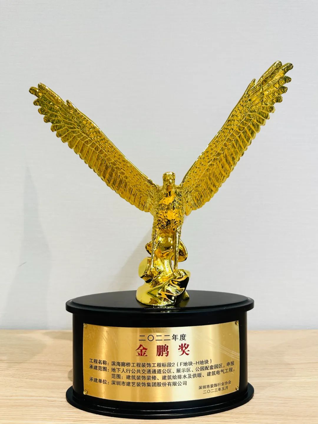 近日,由深圳市裝飾行業(yè)協(xié)會主辦的深圳市裝飾工程金鵬獎評審結果通知,建藝集團承建的濱海廊橋裝飾工程標段2(F地塊-H地塊)工程榮獲“2022 年度深圳市金鵬獎”。