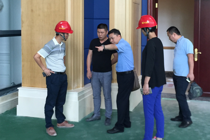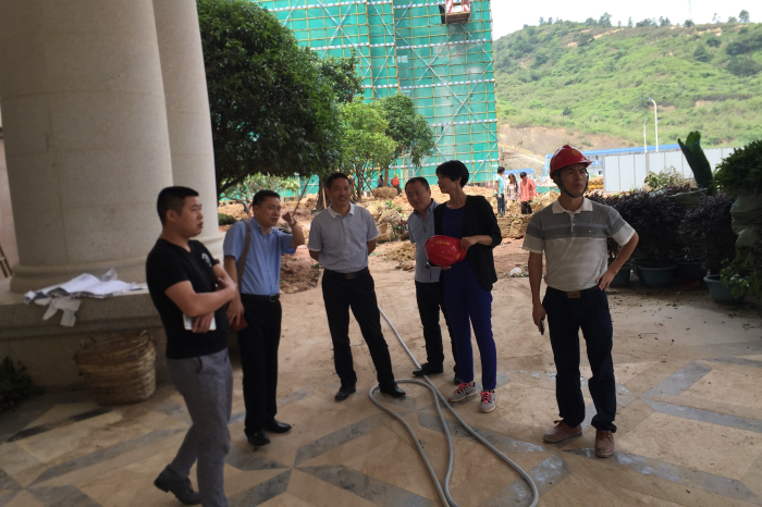 建藝集團副總裁劉慶云(左三)正在檢查項目施工情況