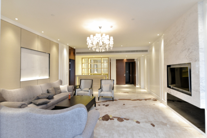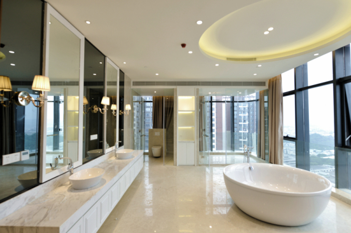 華耀城頂層是以五星級酒店標(biāo)準(zhǔn)裝修的客房,專為接待尊貴客人而準(zhǔn)備??偨y(tǒng)套房設(shè)有吧臺,寬敞到可以繞著大浴缸騎自行車的浴室,且浴室專門設(shè)有桑拿室。豪華的裝修不僅彰顯了企業(yè)的實力與氣勢,更是凸顯了對客人的尊重。