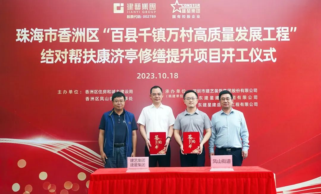 今年以來,廣東全面吹響了“百縣千鎮(zhèn)萬村高質(zhì)量發(fā)展工程”奮進(jìn)號(hào)角,珠海市委市政府全面響應(yīng)、深入實(shí)施,積極動(dòng)員全市上下快速投入 “百千萬工程”樣板打造,描繪城鄉(xiāng)區(qū)域協(xié)調(diào)發(fā)展“新藍(lán)圖”。10月18日,建藝集團(tuán)與旗下控股子公司建星集團(tuán)結(jié)對(duì)幫扶“康濟(jì)亭修繕提升工程”開工儀式在南溪村舉行。