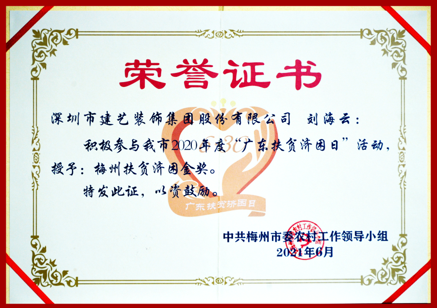 【建藝動(dòng)態(tài)】鞏固脫貧成果,助力鄉(xiāng)村振興——建藝集團(tuán)獲2020年度廣東扶貧濟(jì)困榮譽(yù)表彰