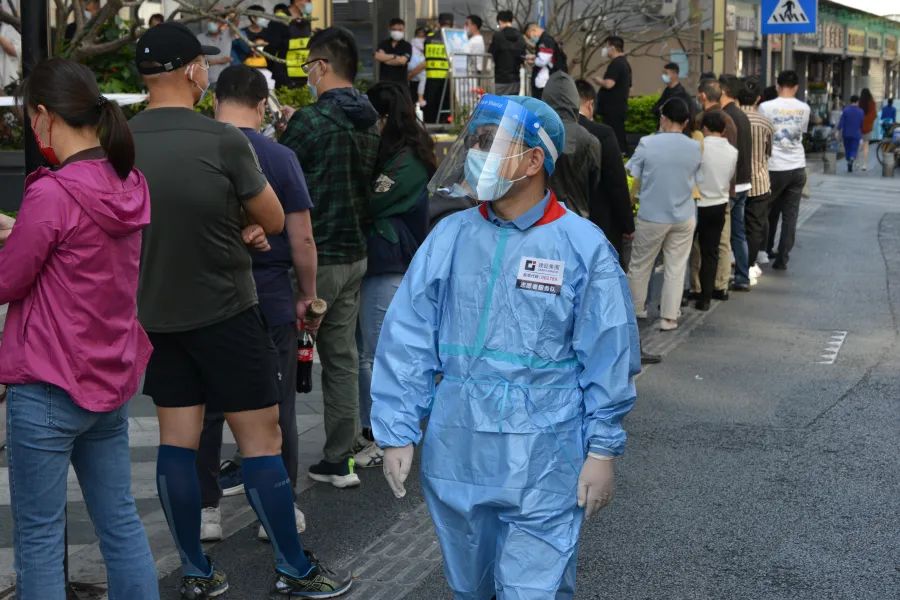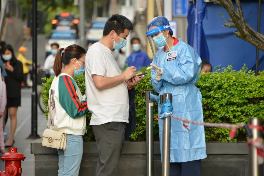 建藝志愿者在核酸檢測點疏導(dǎo)群眾