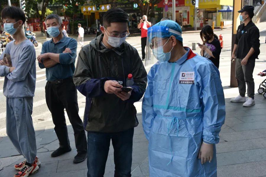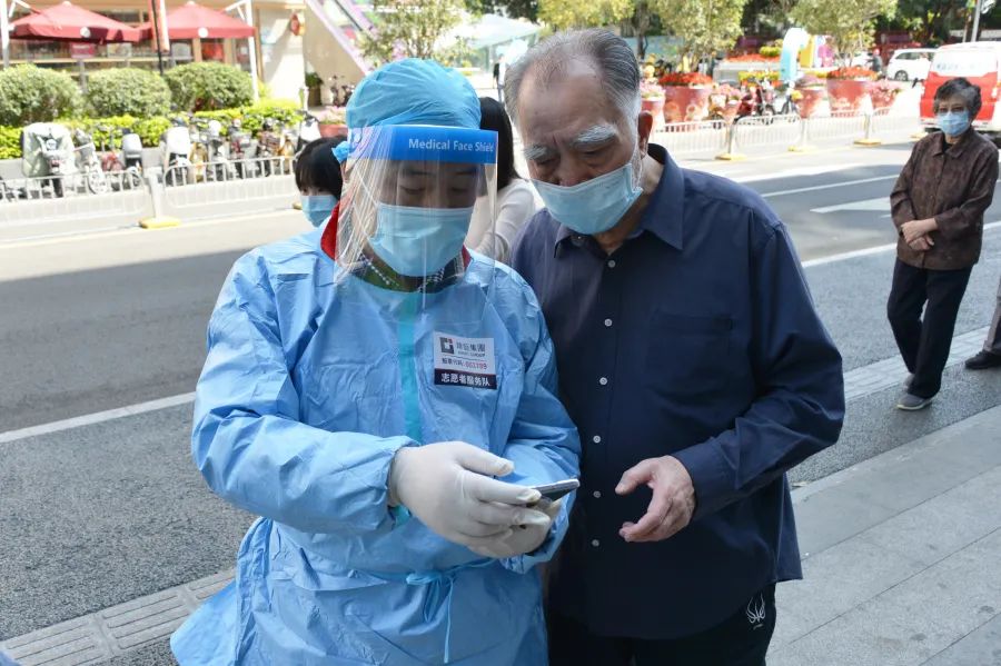 組圖:建藝志愿者在核酸檢測點為群眾提供便利
