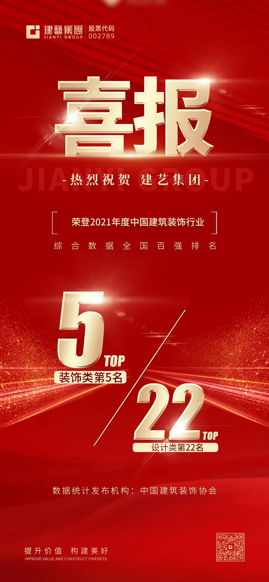 【重磅】建藝集團(tuán)連續(xù)榮登中國(guó)建筑裝飾行業(yè)綜合百?gòu)?qiáng)榜排名裝飾類第5名和設(shè)計(jì)類第22名