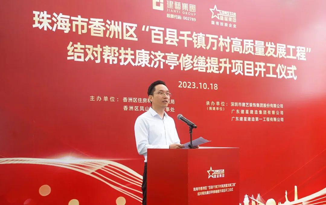 珠海市香洲區(qū)住房和城鄉(xiāng)建設(shè)局黨組書記黃志輝代表區(qū)委、區(qū)政府對建藝集團(tuán)、建星集團(tuán)結(jié)對幫扶致以衷心感謝。他表示,康濟(jì)亭修繕提升工程的動工,不僅是區(qū)積極貫徹省、市“百縣千鎮(zhèn)萬村高質(zhì)量發(fā)展工程”工作重要開端,也是推進(jìn)企業(yè)結(jié)對幫扶工作典范。項目的建設(shè)將有力推動全區(qū)引入社會力量參與歷史建筑保護(hù)工作,為賡續(xù)城市文脈、提升城市品位、進(jìn)一步豐富城市內(nèi)涵做出貢獻(xiàn)。