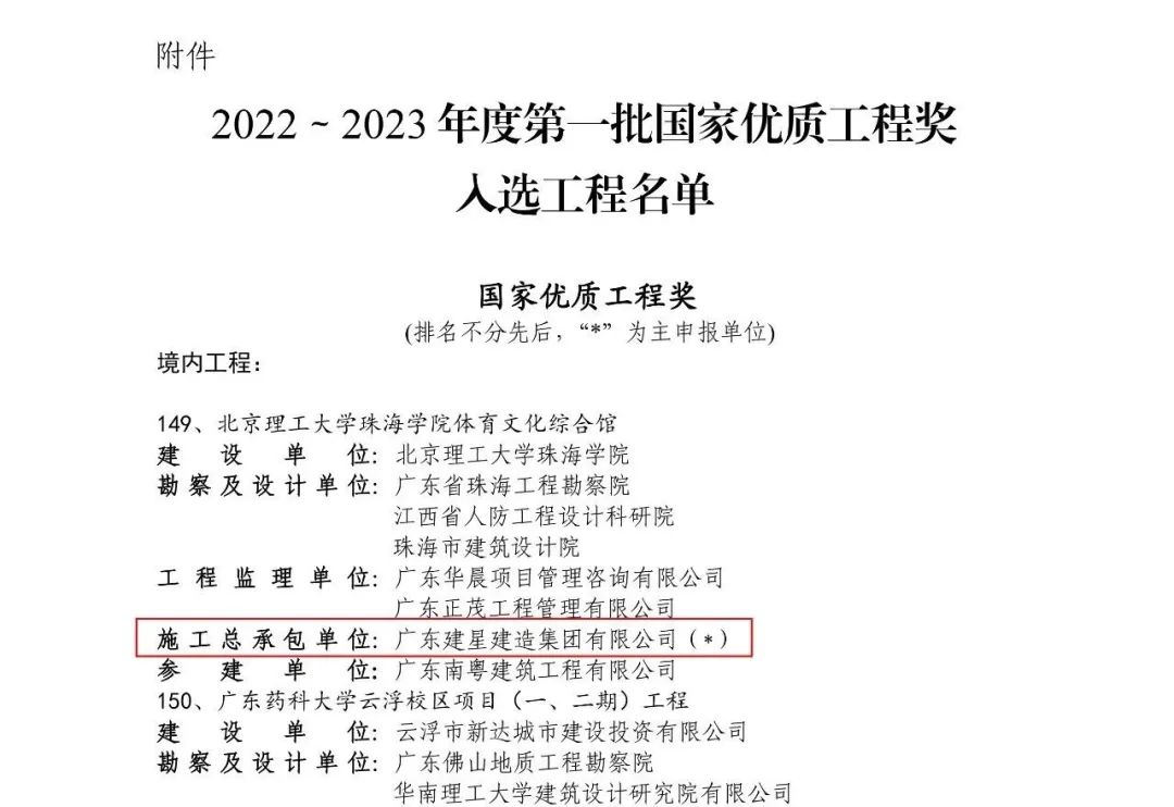 喜訊丨建藝集團(tuán)旗下建星集團(tuán)承建項(xiàng)目榮獲國(guó)家優(yōu)質(zhì)工程獎(jiǎng)