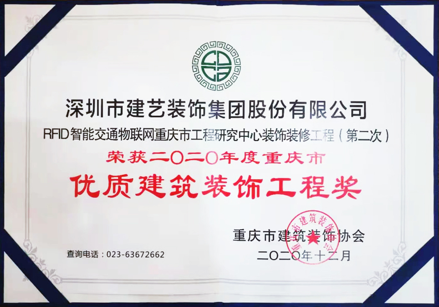 繼榮獲“中國建筑工程裝飾獎”殊榮后,建藝集團承建項目——RFID智能交通物聯(lián)網(wǎng)重慶市工程研究中心裝飾工程近日再獲“2020年度重慶市優(yōu)質建筑裝飾工程獎”。