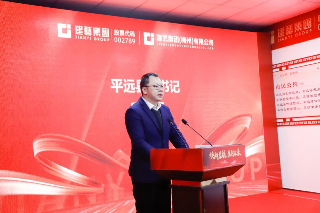 平遠(yuǎn)縣委書(shū)記周小勇同志在儀式上發(fā)表講話(huà)。他指出,近年來(lái)平遠(yuǎn)縣充分發(fā)揮資源稟賦優(yōu)勢(shì),大力推進(jìn)產(chǎn)業(yè)園區(qū)建設(shè),實(shí)施工業(yè)倍增升級(jí)行動(dòng),打造特色產(chǎn)業(yè)集群,全力推動(dòng)縣域經(jīng)濟(jì)、鎮(zhèn)域?qū)嵙痛寮?jí)活力的全面提升。希望建藝集團(tuán)(梅州)有限公司充分發(fā)揮國(guó)企、上市公司的平臺(tái)及資源優(yōu)勢(shì),不斷做大總量、做強(qiáng)規(guī)模。強(qiáng)化專(zhuān)業(yè)技術(shù)優(yōu)勢(shì),堅(jiān)定走市場(chǎng)化道路,形成可持續(xù)、高質(zhì)量的發(fā)展動(dòng)能,煥新啟航,盛創(chuàng)未來(lái)。
