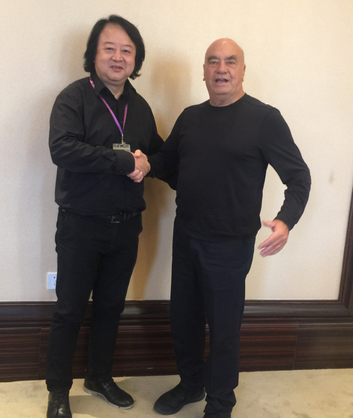 郭杰院長與意大利設(shè)計大師、深圳機場T3航站樓設(shè)計師、法國總統(tǒng)“榮耀勛章”獲得者Massimiliano Fuksas(右)合影