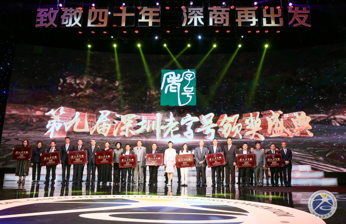 劉海云董事長(zhǎng)登臺(tái)領(lǐng)取“深圳老字號(hào)”榮譽(yù)獎(jiǎng)牌