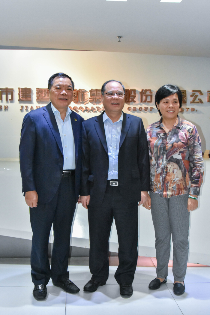 建藝集團(tuán)、建藝控股董事會(huì)主席劉海云及集團(tuán)董事、副總裁顏如珍與余書記合影留念