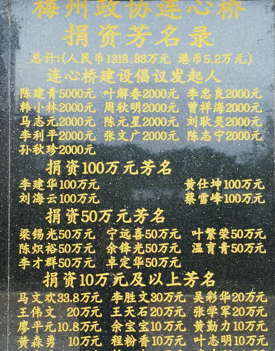 梅州政協(xié)連心橋捐資芳名錄(局部)